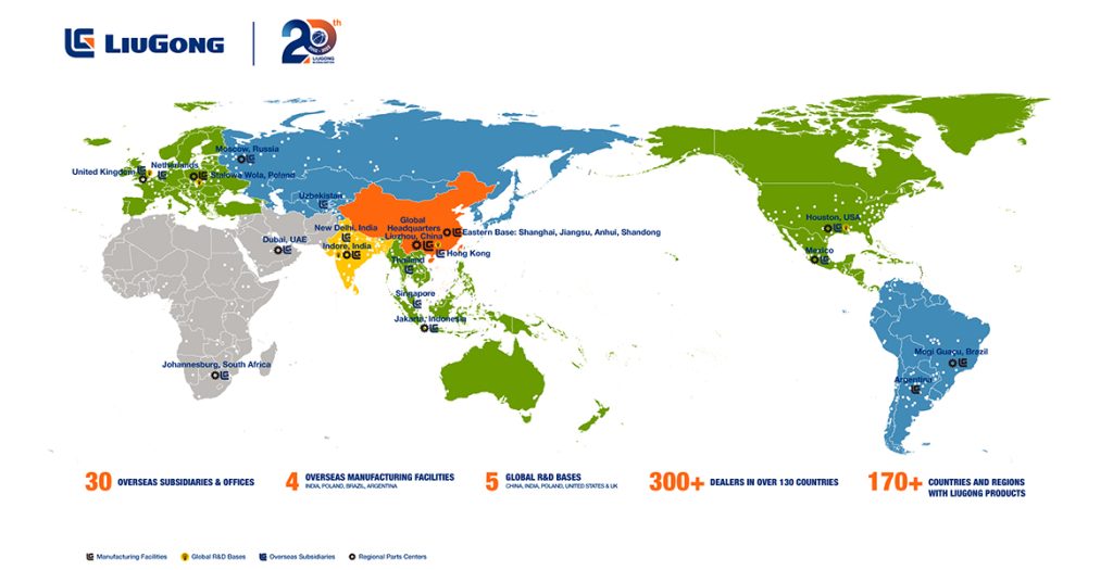 As one of the first in the Chinese construction machinery industry to venture overseas, LiuGong has been a pioneer in overseas manufacturing, with operations in 7 major global regions. LiuGong has also set industry benchmarks for electric products and R&D. LiuGong’s entire product lines have gone overseas and its electric loader debuted on the international market.