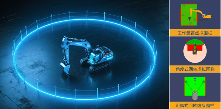 提供上、下、前、后、左、右等多个方向的虚拟围栏,可以多方位限制挖掘机机身及工作装置在指定区域内作业,从而确保施工现场的安全性和高效性。其优势在于: