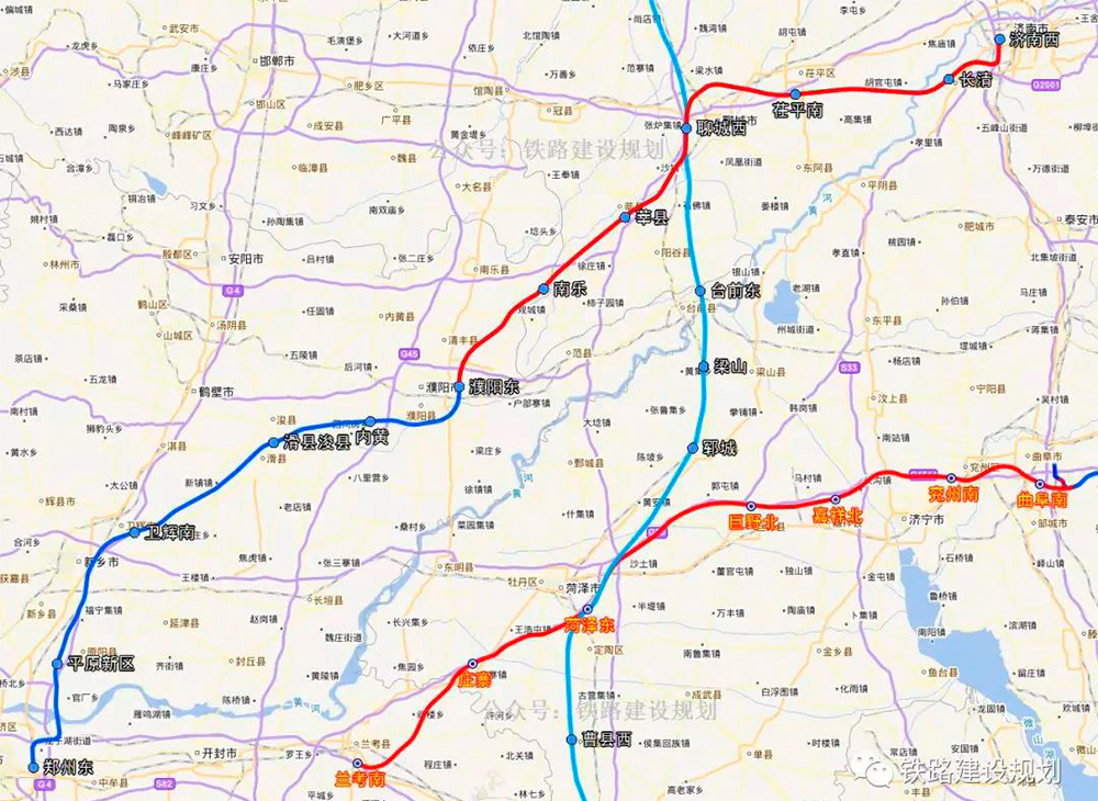济郑高铁线路方案示意图
