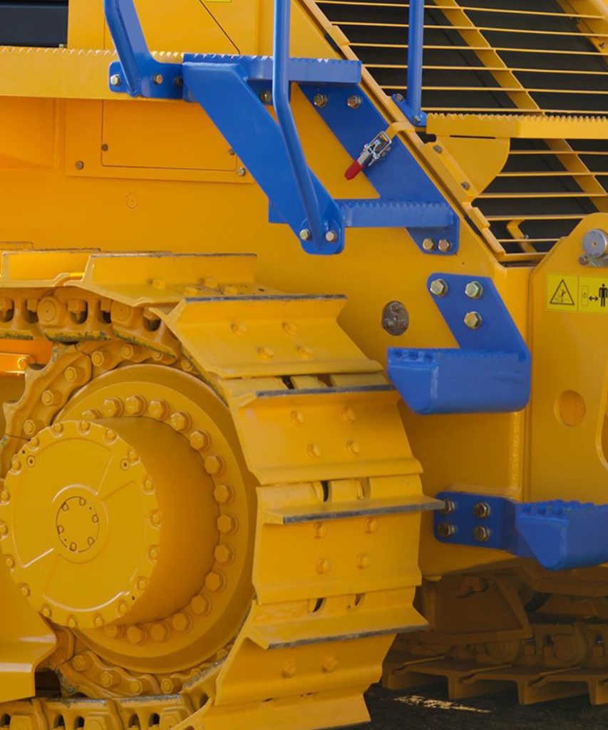 新一代推土机凭借其独特的底盘设计,在多功能性方面进行了创新,该设计在所有不同宽度的履带板上均采用单履齿。在推土机使用寿命周期内可任意更换履带配置,从标准型到湿地型(LGP)均可简单的进行履带和推土铲配置的更换。这一功能大大提升了多功能性的适应性,让后续的设备所有者通过更换配置以满足他们的工况需求,从而提高了设备的转售价值。