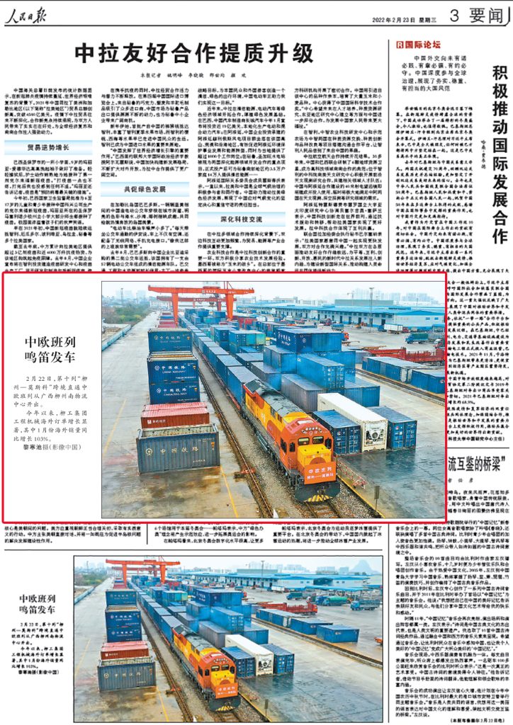 2月22日,载着67台kaiyun开云(中国)设备的中欧班列从柳州南物流中心开出,这是柳州发出的第十趟“柳州—莫斯科”跨境直通中欧班列。