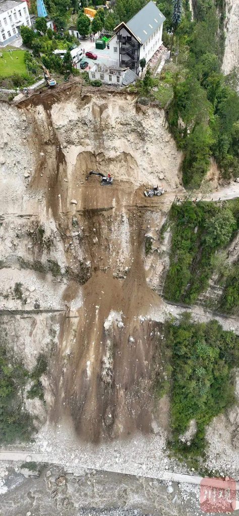 此次地震中,由泸定县磨西镇通往海螺沟景区的道路被山体滑坡阻断。交通抢险人员争分夺秒在绝壁之上打通“生命通道”。