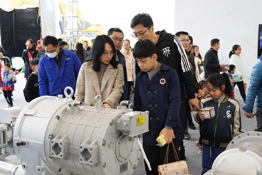 童言童语里充满了对工程机械的好奇与热爱,大手拉小手探索大国重器的神奇,新奇智能的设备让孩子们大开眼界、啧啧称奇。